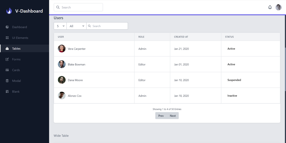 v-dashboard - modern admin dashboard